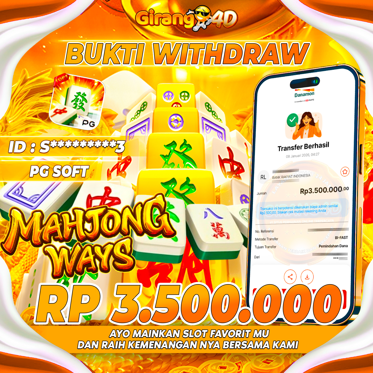 Selamat Kepada Id : S*********3 Atas Withdraw Rp. 3.500.000 Hari ini. Ditunggu Withdraw Selanjutnya dan ajak juga teman temannya bergabung di GIRANG4D