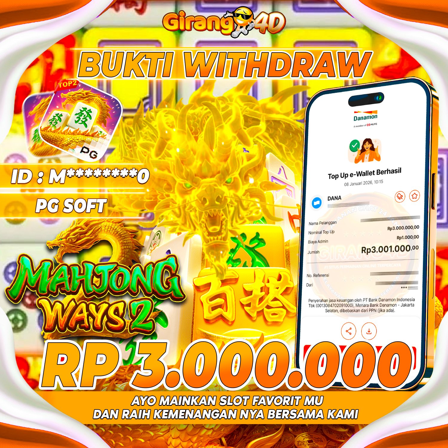 Selamat Kepada Id : M********0 Atas Withdraw Rp. 3.000.000 Hari ini. Ditunggu Withdraw Selanjutnya dan ajak juga teman temannya bergabung di GIRANG4D