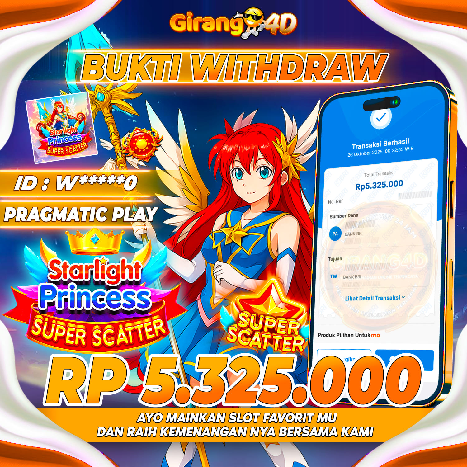 Selamat Kepada Id : W******0 Atas Withdraw Rp. 5.325.000 Juta Hari ini. Ditunggu Withdraw Selanjutnya dan ajak juga teman temannya bergabung di GIRANG4D
