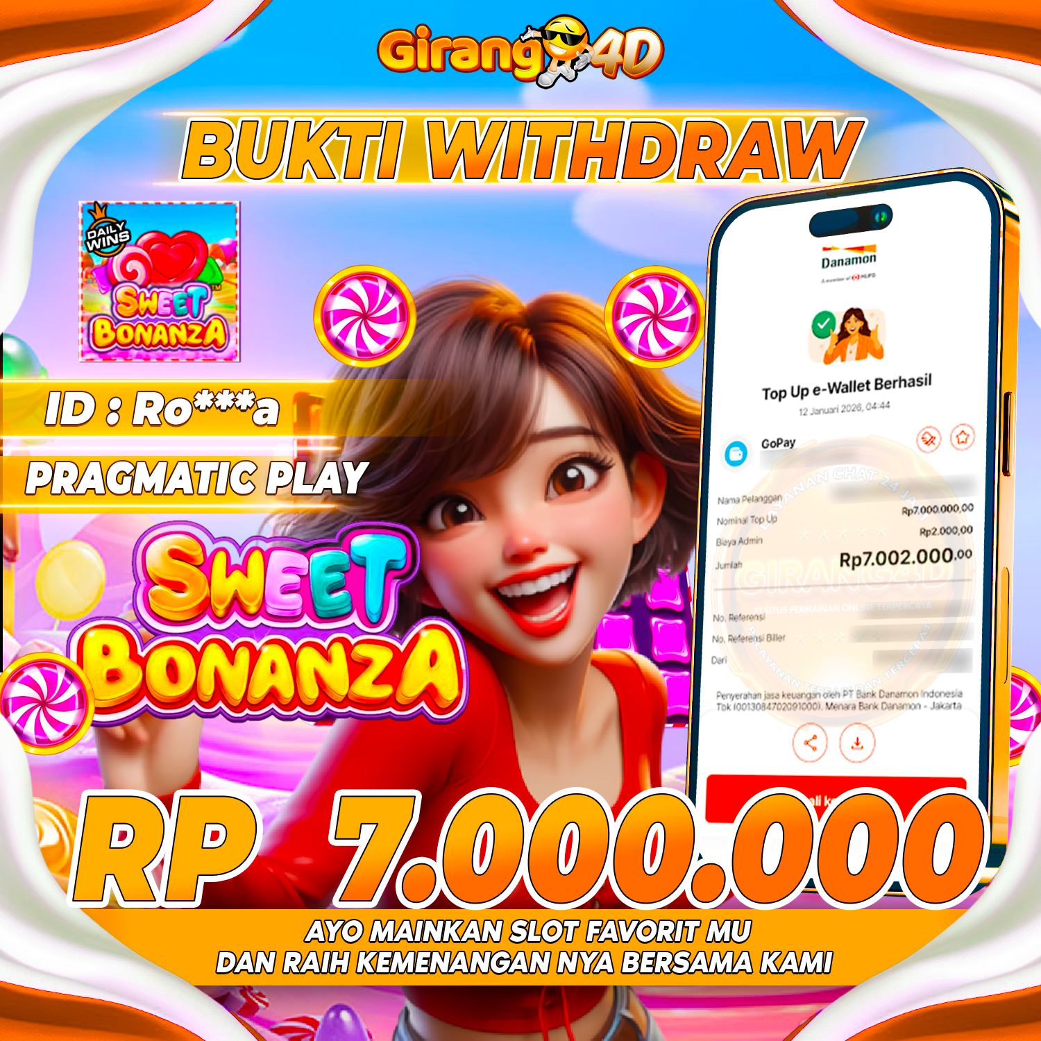 Selamat Kepada Id : Ro***a Atas Withdraw Rp. 7.000.000 Hari ini. Ditunggu Withdraw Selanjutnya dan ajak juga teman temannya bergabung di GIRANG4D